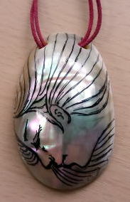 ここ最近制作したペンダント3作品です。下のカメオ風の作品は貝の曲面を活用し,立体感を強調してみました。