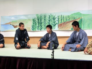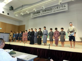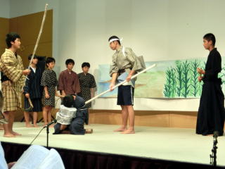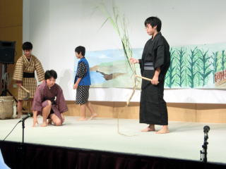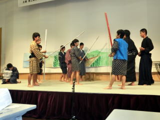 | 8月2日(土)に,犬田布騒動150周年シンポジウムが開催されました。生徒会による劇「犬田布騒動」を第一部で上演しました。参加した生徒たちは夏休みを返上して練習に励み当日を迎えました。また,シンポジウムに先立ち,犬田布騒動記念碑前で慰霊祭も行われ,代表が出席しました。今の生徒たちには,本校区の歴史や先人たちの生き様に学び,後世に伝えていく使命があります。そういう意味で貴重な活動でした。 |