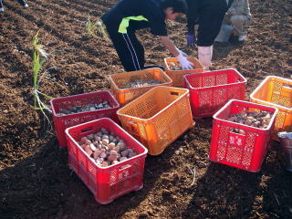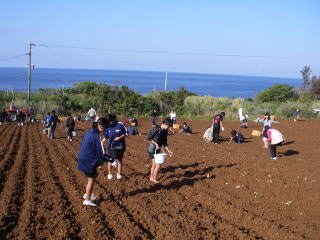 11月2日(日)の午前8時からPTA事業部の協力をいただき,ジャガイモの植え付けを行いました。本活動は益金をPTA費の補助にするために昨年度から始めていますが,今年は昨年度よりも作付面積を増やしたので,種芋も昨年度の3倍を準備しました。しかし,PTAと生徒たちの作業も手際が良く,2時間程度で完了しました。今後,生徒たちが収穫をするまでは,事業部の方々で何度か手入れをしていただくことになるようです。